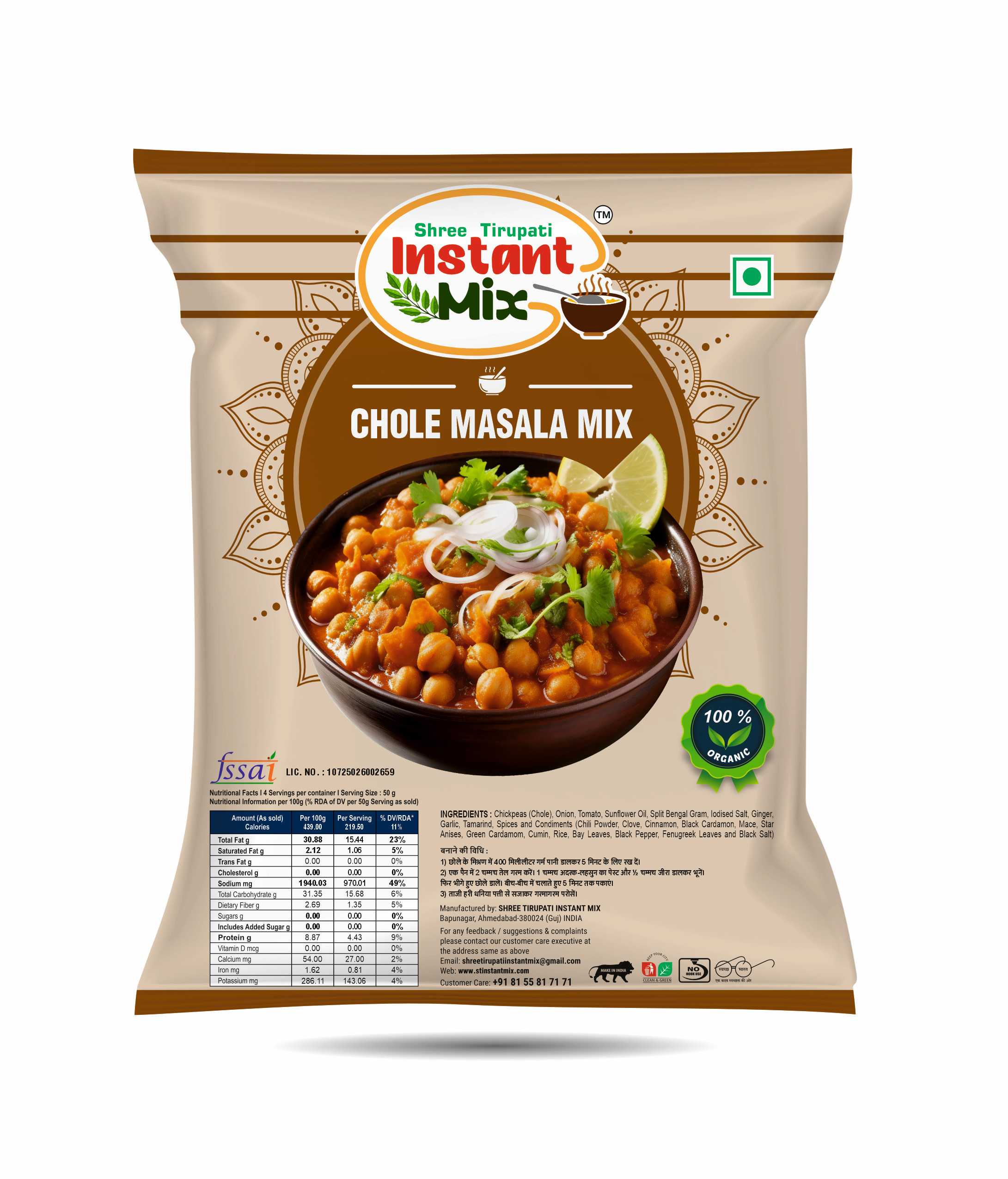 Chole Masala Mix is a bold and aromatic blend of handpicked spices crafted to deliver the authentic taste of traditional Punjabi chole. This perfectly balanced masala enhances the natural flavor of chickpeas, adding rich spice, tanginess, and deep aroma to every bite. Made from premium-quality ingredients, it ensures consistent taste and restaurant-style results at home. Easy to use and time-saving, Chole Masala Mix helps you prepare delicious, hearty, and flavorful chole that pairs perfectly with bhature, kulcha, roti, or rice.