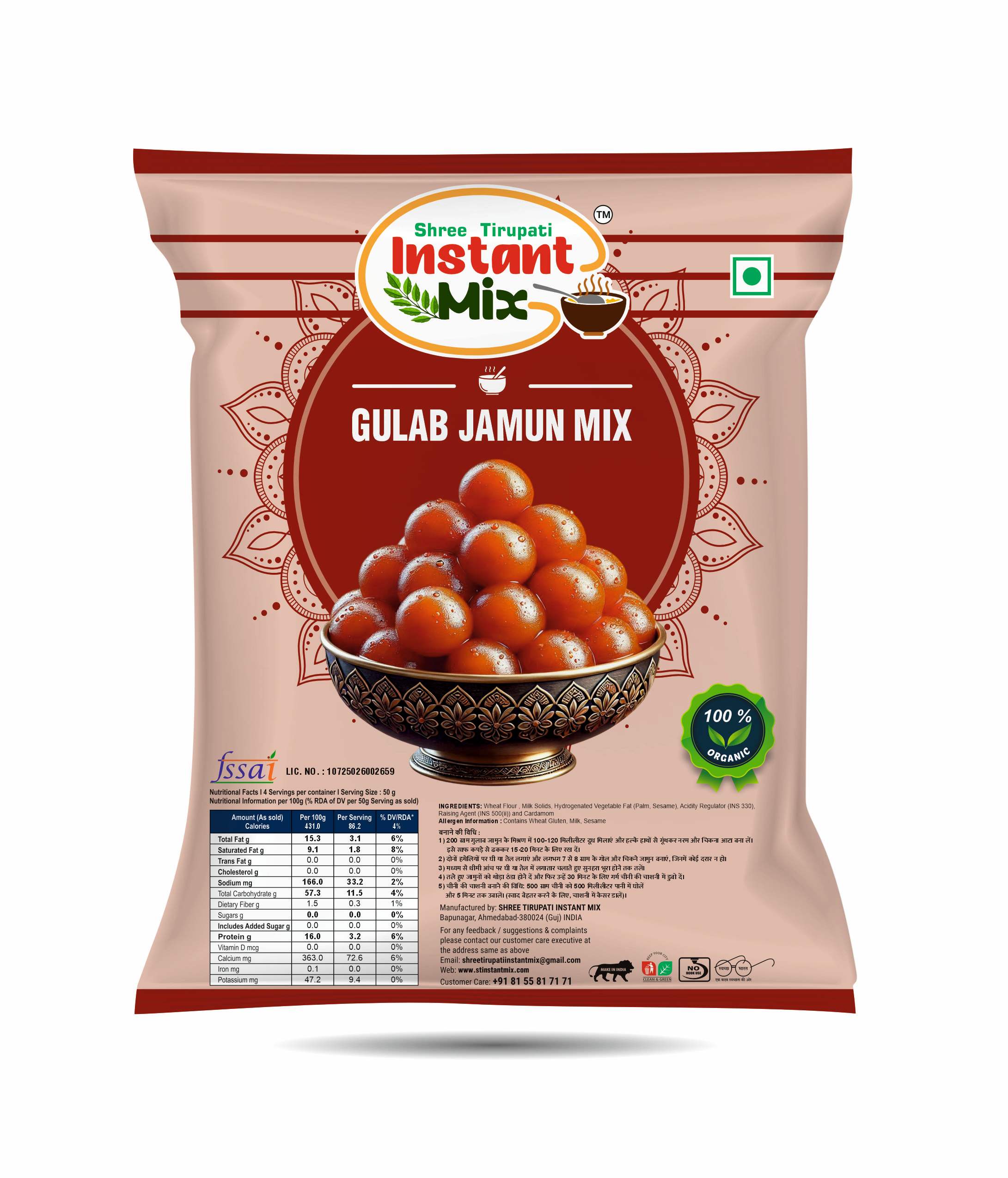 Gulab Jamun Mix is a premium blend crafted to help you prepare soft, spongy, and delicious gulab jamuns with ease. Made from high-quality ingredients, this mix ensures perfect texture, rich taste, and consistent results every time. Easy to use and time-saving, it allows you to create traditional Indian sweets effortlessly at home. The jamuns absorb sugar syrup beautifully, delivering a melt-in-the-mouth experience with every bite. Ideal for festivals, celebrations, and special occasions, Gulab Jamun Mix brings authentic sweetness and joy to your dessert table.