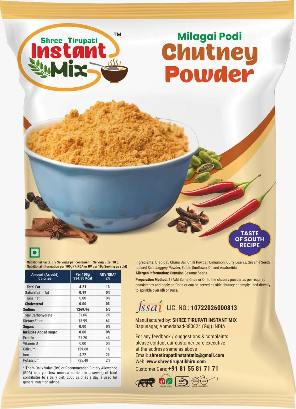 Milagai Podi, also known as Chutney Powder or Idli Podi, is a traditional South Indian spice blend crafted from roasted lentils, dried red chilies, sesame seeds, and fragrant spices. Ground to a coarse, aromatic powder, it delivers a balanced combination of heat, nuttiness, and savory depth. Typically mixed with ghee or oil, Milagai Podi becomes a delicious dipping accompaniment for idli, dosa, and other breakfast favorites. Its rich flavor, long shelf life, and versatility also make it an excellent seasoning for rice, vegetables, or snacks.